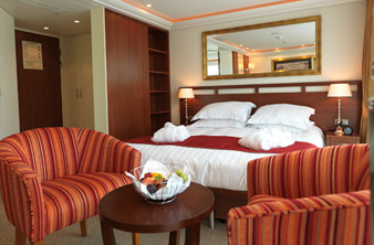 This versatile space hosts a bar, dance floor, plenty of comfortable couches and big windows on three sides and is used for everything from the morning port talks, daytime reading and chatting to scenic cruising, afternoon tea and evening entertainment.